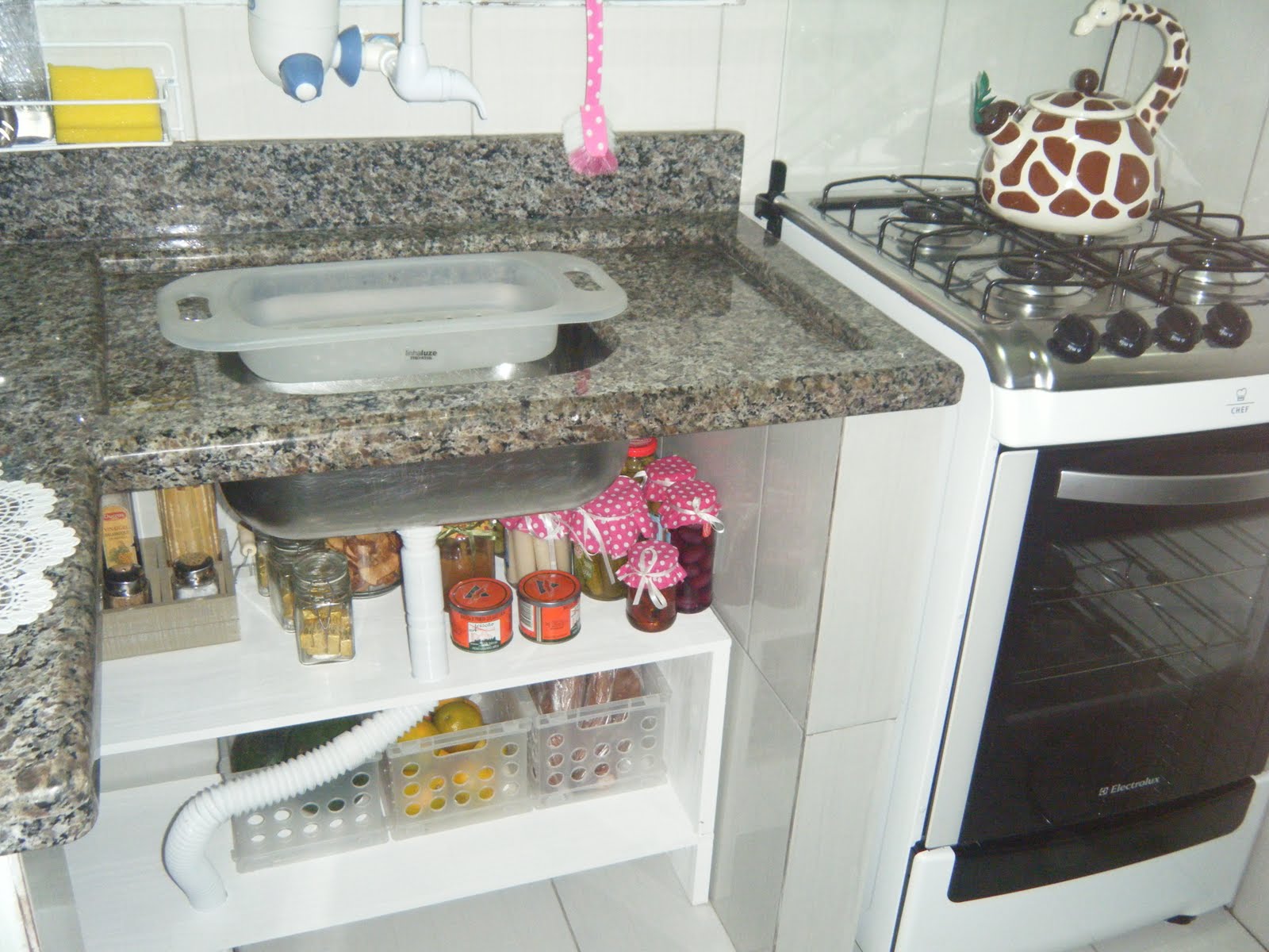 Viram ela aqui? lá embaixo usei organizadores pra colocar hortifrutis que nao necessitam da geladeira...Em cima minhas conservas e na curva do L separado ficam todos os produtos de lavar louça e limpar cozinha...