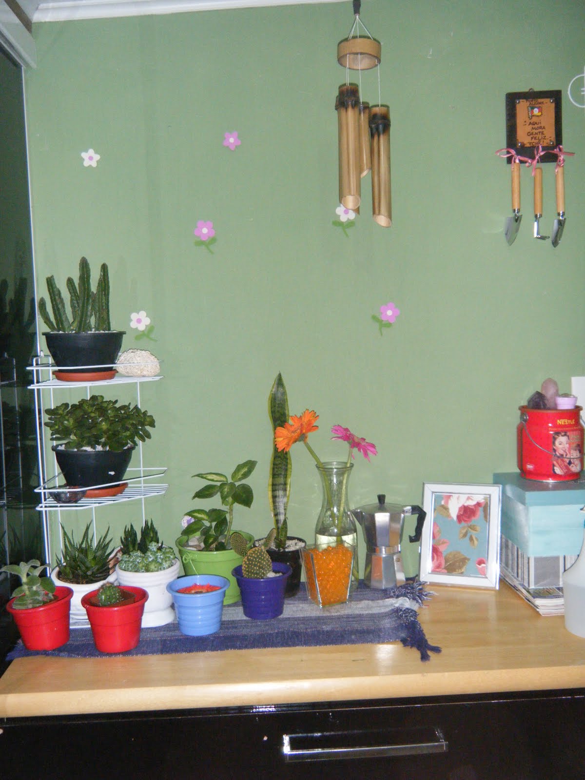 Nos fundos da cozinha, tenho essas plantinhas, é meu cantinho zen...