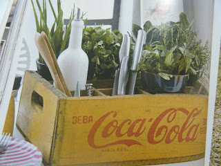 Adoro ver as diferentes formas que podemos usar os caixotes de frutas, mas esse antigo da Coca-Cola nao é um amor?Eu nao sei se usaria aqui em casa, mas se eu tivesse um jardim grande e um espaço legal sem dúvida...