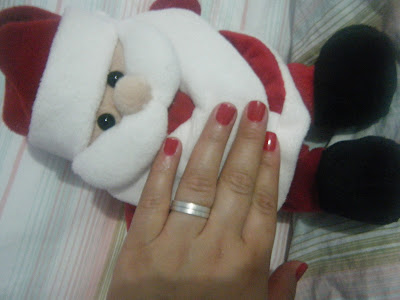Hummm que acharam do meu esmalte? A sugestão da blogagem coletiva foi vermelho ou dourado...optei pelo vermelho Romã, da colorama, combinou com o bom velhinho....
