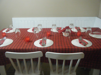 A mesa foi bem simples, mas as velas vermelhas deram um charme não acham?