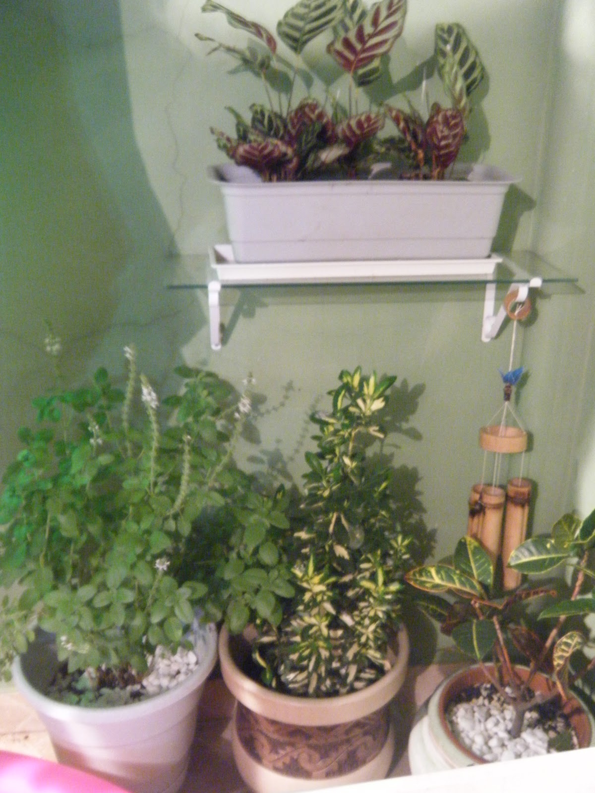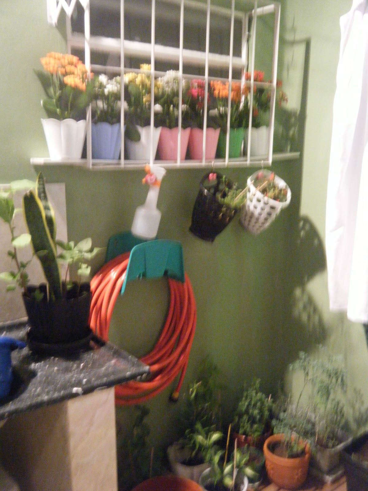 Fiz um mini jardim... e olhem o que fiz na janela do banheiro....viu os cestinhos pendurados??