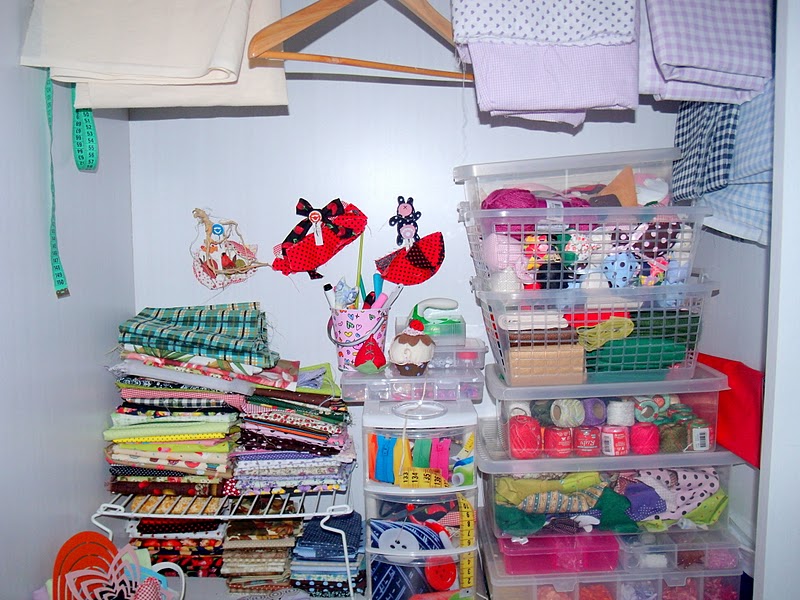 Vocês já conhecem o mosaico da Rê né? Não? corre lá, essa semana fala sobre atelie, por isso resolvi"atualizar" meu cantinho que andei fazendo mudanças, como ando produzindo, eu separei um espaço do meu roupeiro, que fica em frente meu cantinho, só pra guardar tecidos olha só:
