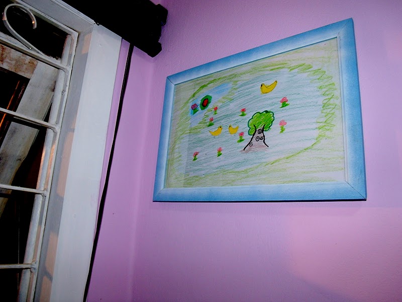 Um moldura simples, mas com a obra de arte do seu filho, linda... né?