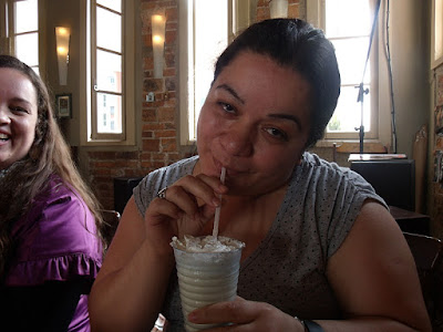 Tomei Shake, preparado especialmente pra mim, e a Fabi só conferindo