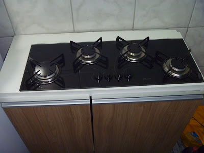 Só que deu zebra...Queria enfiar a cabeça em baixo da terra...Não consegui me adaptar ao fogão novo...As panelas não ficavam na boa, era impossível cozinhar em mais de 2 bocas com as panelas que uso normalmente, e além disso as bocas ficavam muito perto dos botões fazendo com que eles esquentassem muito.Só que nisso eu já tinha me desfeito do antigo fogão(se perguntarem como eu choro)
